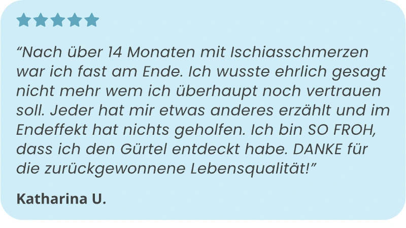 Nach Jahren mit Ischiasschmerzen und vielen Versuchen möchte ich nun den Orthogürtel ausprobieren. Nach vielen Bewertungen finde ich ihn die ideale Lösung und kann ihn nur empfehlen. Vielen Dank an das Team.